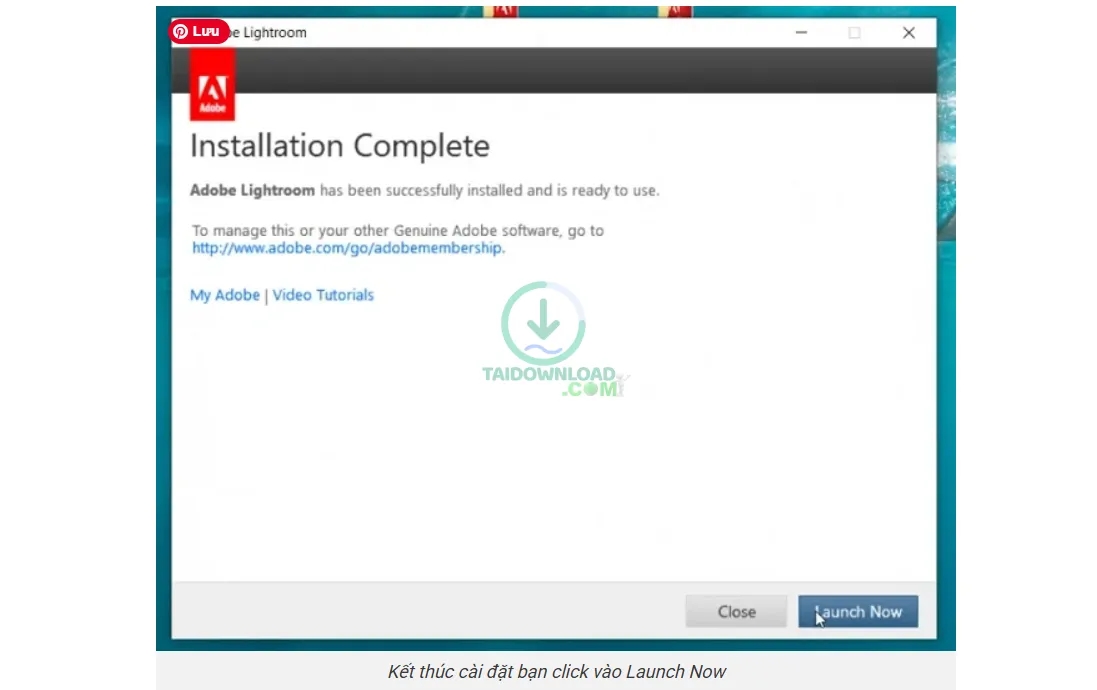 Bước 8: Bây giờ bạn chỉ cần dành thời gian chờ đợi phần mềm cài đặt vào máy. Quá trình này nhanh hay chậm sẽ tùy thuộc vào máy tính của bạn. Một khi phần mềm Lightroom 2017 cài đặt thành công, bạn click vào Launch Now là hoàn tất quá trình.