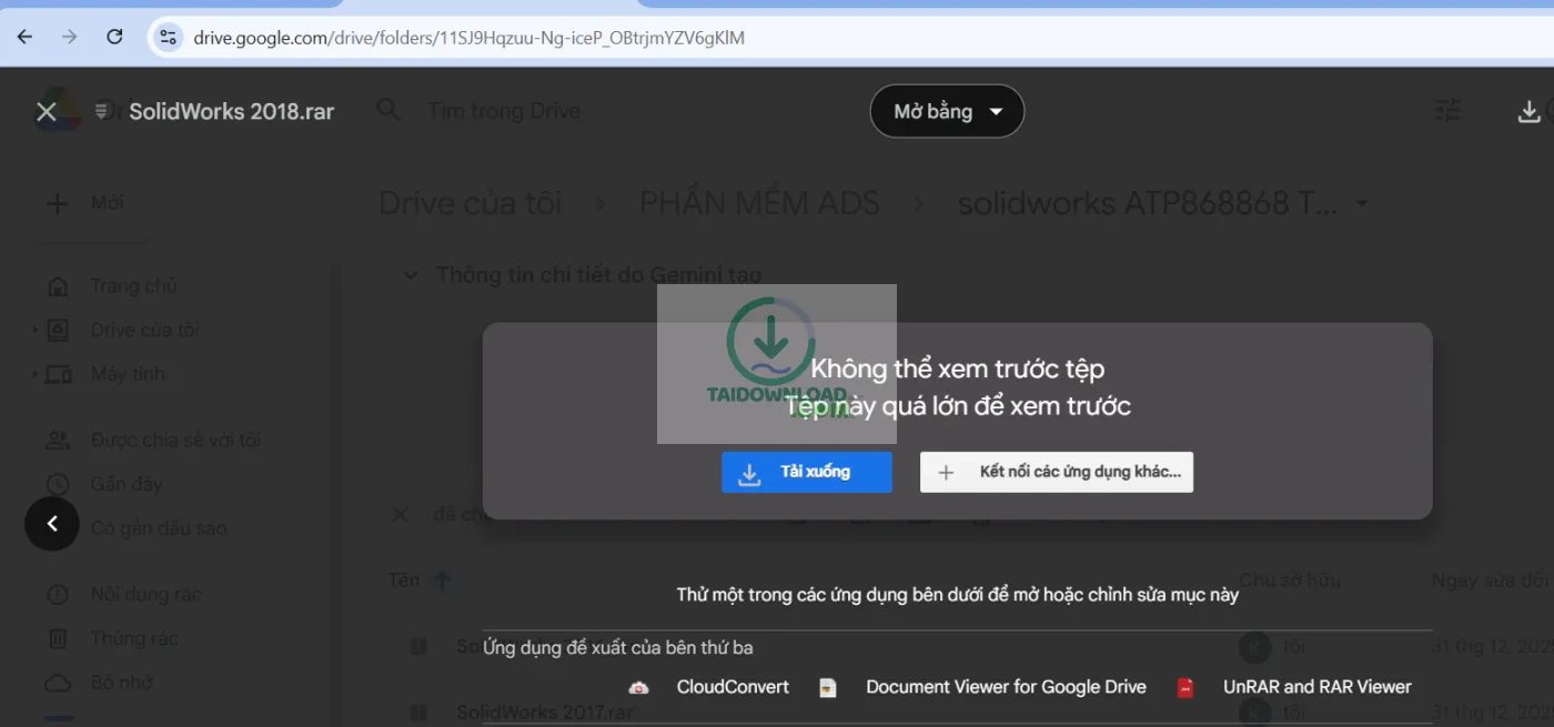 Để bắt đầu hướng dẫn cài đặt SolidWorks 2018, bạn cần tải file cài đặt từ nguồn đáng tin cậy. Tại Taidownload.com, chúng tôi cung cấp link tải SolidWorks 2018 an toàn và đầy đủ các thành phần cần thiết. File cài đặt thường có dung lượng từ 10GB đến 15GB tùy thuộc vào các module bạn chọn cài đặt, vì vậy hãy đảm bảo có đủ băng thông internet và không gian ổ cứng.