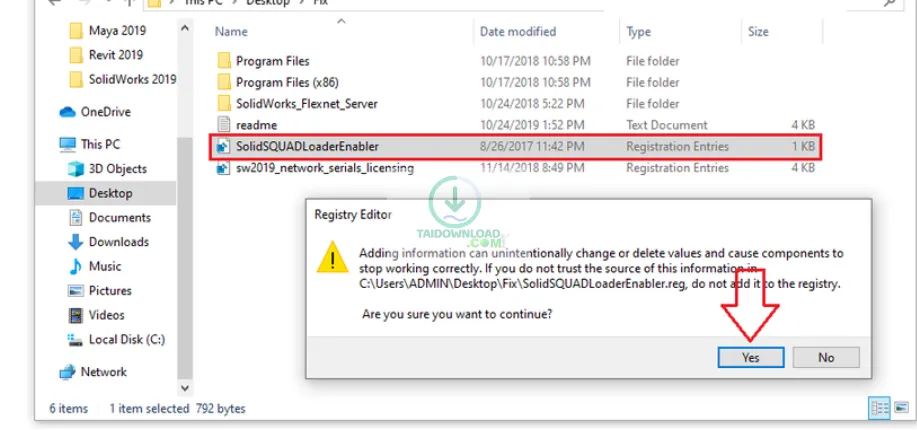 Bước 2: Bạn hãy ngắt kết nối mạng internet. Mở thư mục Fix và chạy file sw2019 network serials licensing.reg như hình dưới: